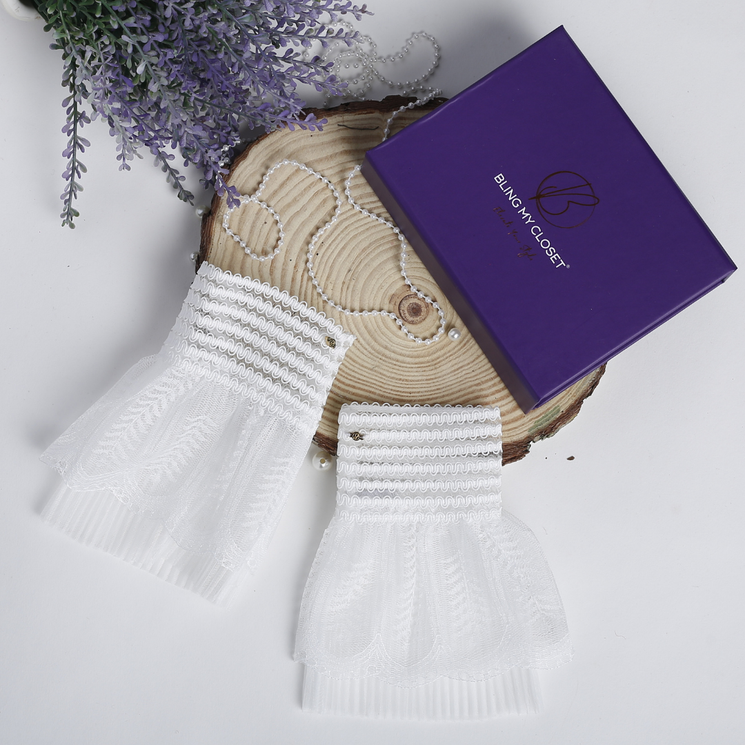 Designed for our CottageCore Lovelies! From the Exquisite Summer Luncheons to all those picnic dates beside the trees, just know you’re creating memories when these Frilly Detachable Cuffs accompany your soft hands. Pairs perfectly with Shirts, Lounge Dresses, Sarees and much more