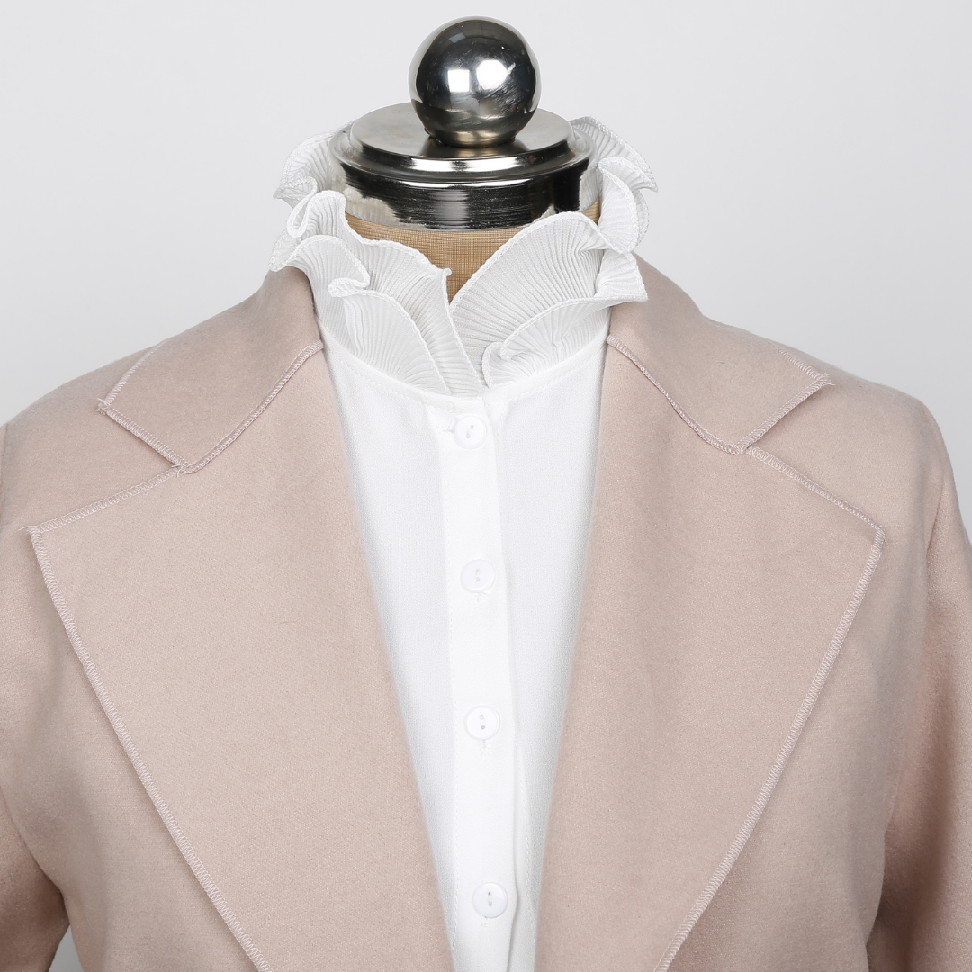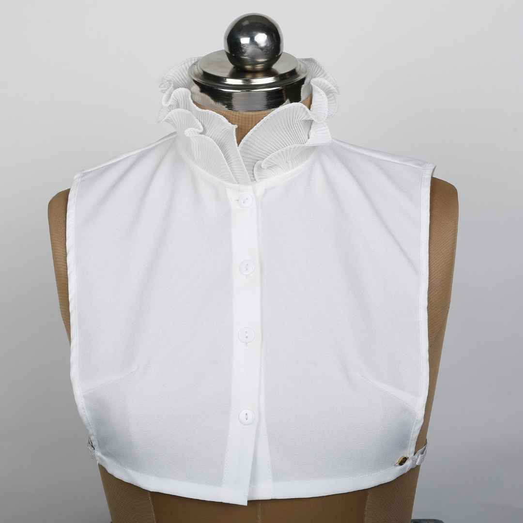 A White Detachable collar with curvy frills. It’s super-easy to put on & take off. Yet, the superlative trait of this accessory is how well it can be paired up with most styles one can carry.